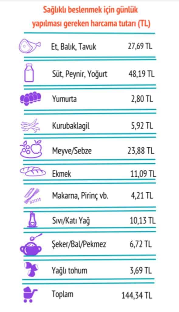 Sağlıklı beslenmek için günlük harcanması gereken 144 lirada aslan payı süt ürünlerinin. İkinci sırada et ürünleri, üçüncü sırada ise meyve-sebze yer alıyor.