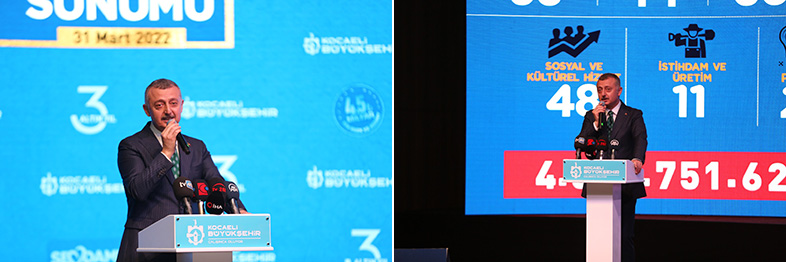 Büyükşehir Belediyesi tarafından 3 yıllık dönemde 4.525.751.620 TL’lik yatırımla tamamlanan 309 eser ve hizmetin arasında 129 adet yeni otobüs alımı, Karamürsel Köprülü Kavşağı, Körfez İlimtepe Bağlantı Yolu 1. Etap, Başiskele Yeni Emniyet Binası Otopark ve Çevre Yolları, Gölcük Kavaklı Sahil Caddesi, Gölcük Devlet Hastanesi Yolu, İzmit Eski Kandıra Kavşağı, GEBZESEM, Gebze Yarı Olimpik Yüzme Havuzu, Gebze Spor Salonu, Gebze Metin Oktay Stadı, İzmit Çocuk Trafik Eğitim Merkezi, Körfez ve Gebze Akademi Lise, Kartepe İHL Spor Salonu, Kandıra Yarı Olimpik Yüzme Havuzu, Ereğli Evleri Restorasyonu, Körfez Hereke Sahil Parkı, Darıca Balyonoz Parkı, Derince Cımbızdere Mesire Alanı, Gebze Tatlıkuyu Vadisi 2. Etap, İzmit Çubuklubala Seyir Terası, İzmit Cumhuriyet Bulvarı gibi hizmet ve eserler yer aldı. Ayrıca sosyal ve kültürel alanlarda Büyükşehir, 41 Kart, hasta nakil, engelsiz taksi, gönül kazan gibi hizmetlerle ihtiyaç sahiplerinin yanında oldu. Kılavuz Gençlik Projesinde binlerce öğrenci ve genç bir araya geldi. Pandemi boyunca salgından etkilenen tüm kesimlerin yanında olundu. Şoför esnafı ve pandemiden etkilenen şehir esnafı desteklendi. Üretim ve istihdama ayrı bir önem veren Büyükşehir Belediyesi, gübre desteklemesi, mazot desteği, tohum desteği ve hibe projeleriyle çiftçinin ve üreticinin yanında oldu.