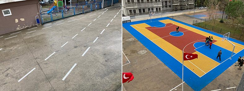 Kocaeli Büyükşehir Belediyesi’nin Potasız Okul Kalmasın Projesi kapsamındaki çalışmaları il genelinde yoğun bir şekilde sürüyor. Bu kapsamda İzmit Yahya Kaptan Mahallesinde bulunan Edebali Ortaokulu bahçesine basketbol ve voleybol sahası yapıldı. İş dahilinde zemine aşınma asfalt serildikten sonra sahanın zemini akrilik boya ile boyandı. İki potanın montajı yapılan saha için Büyükşehir tarafından okula iki takım voleybol seti de hediye edildi. Ayrıca okul idaresinin isteği üzerine bahçenin belirlenen kısımlarına yürüyüş yolu çizgileri çizildi.