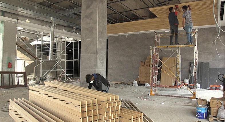 Kandıra Belediye Hizmet Binası ikmal inşaatında, mekanik montaj traverten cephe kaplaması, alüminyum kompozit panel cephe kaplaması ve asansör holü mermer duvar kaplaması imalatları devam ediyor. Aynı şekilde, lineer asma tavan, kalsiyumsülfat özlü yükseltilmiş döşeme montajı, laminant kapı kanadı takılması ve giriş holü ışıklık çelik imalatları ekipler tarafından gerçekleştiriliyor.