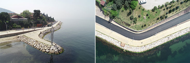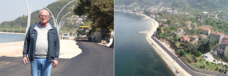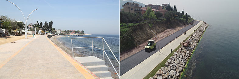 Kocaeli Büyükşehir Belediyesi, Karamürsel Altınkemer ile Ereğli sahilini birleştirecek 5 km’lik yeni yolun 2,5 kilometresinde asfalt serim çalışmasını tamamladı. Sahilin 2,5 kilometresinde parke taşı çalışması yapılıyor. Ereğli sahil yolunda yapılan çalışmalarla, bayram öncesinde asfalt serimi bitirildi. Büyükşehir’e çalışmalarından dolayı teşekkür eden Ereğli Muhtarı Ali Yılmaz, ‘’Ereğli halkımız yapılan hizmetlerden çok memnun. Son çalışmalarla bir çağ, bir devir atladık’’ dedi.