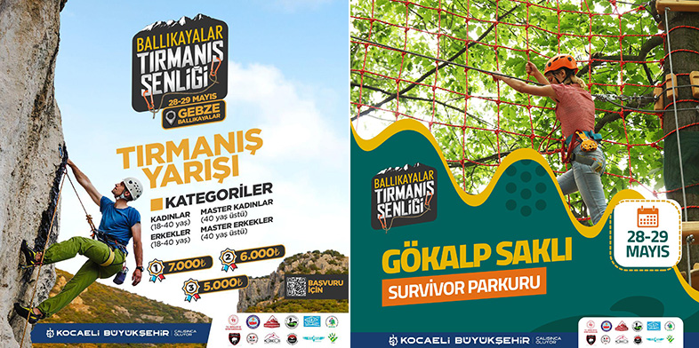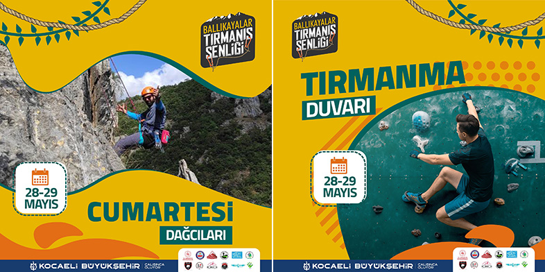 Kocaeli Büyükşehir Belediyesi Gençlik ve Spor Hizmetleri Dairesi Başkanlığı Gençlik Hizmetleri Şube Müdürlüğü İzcilik ve Doğa Sporları biriminin organize edeceği “Ballıkayalar Tırmanış Şenliği”, 28-29 Mayıs 2022 tarihlerinde Ballıkayalar Tabiat Parkında gerçekleşecek. Kocaeli’de faaliyet gösteren dağcılık kulüplerinin destek ve katılımlarıyla da gerçekleşecek olan Ballı Kayalar Tırmanış Şenliği; konser, söyleşi, eğlenceli atölyeler ve ödüllü yarışmayı kapsayan bir konseptte kaya tırmanışını profesyonel olarak yapan tırmanıcıları, amatörleri ve doğaseverleri buluşturacak.