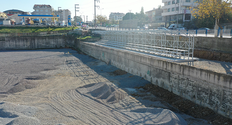 Diğer elektrik ve su hattı çalışmalarının da tamamlandığı projede üstü kapanacak olan doğu tribününde çalışmalara başlandı. Batı sahasında mıcır dolgu işlerine de başlayan Büyükşehir Belediyesi ekipleri, kısa süre içerisinde her iki sahanında sentetik çim halısını sermeye başlayacak.