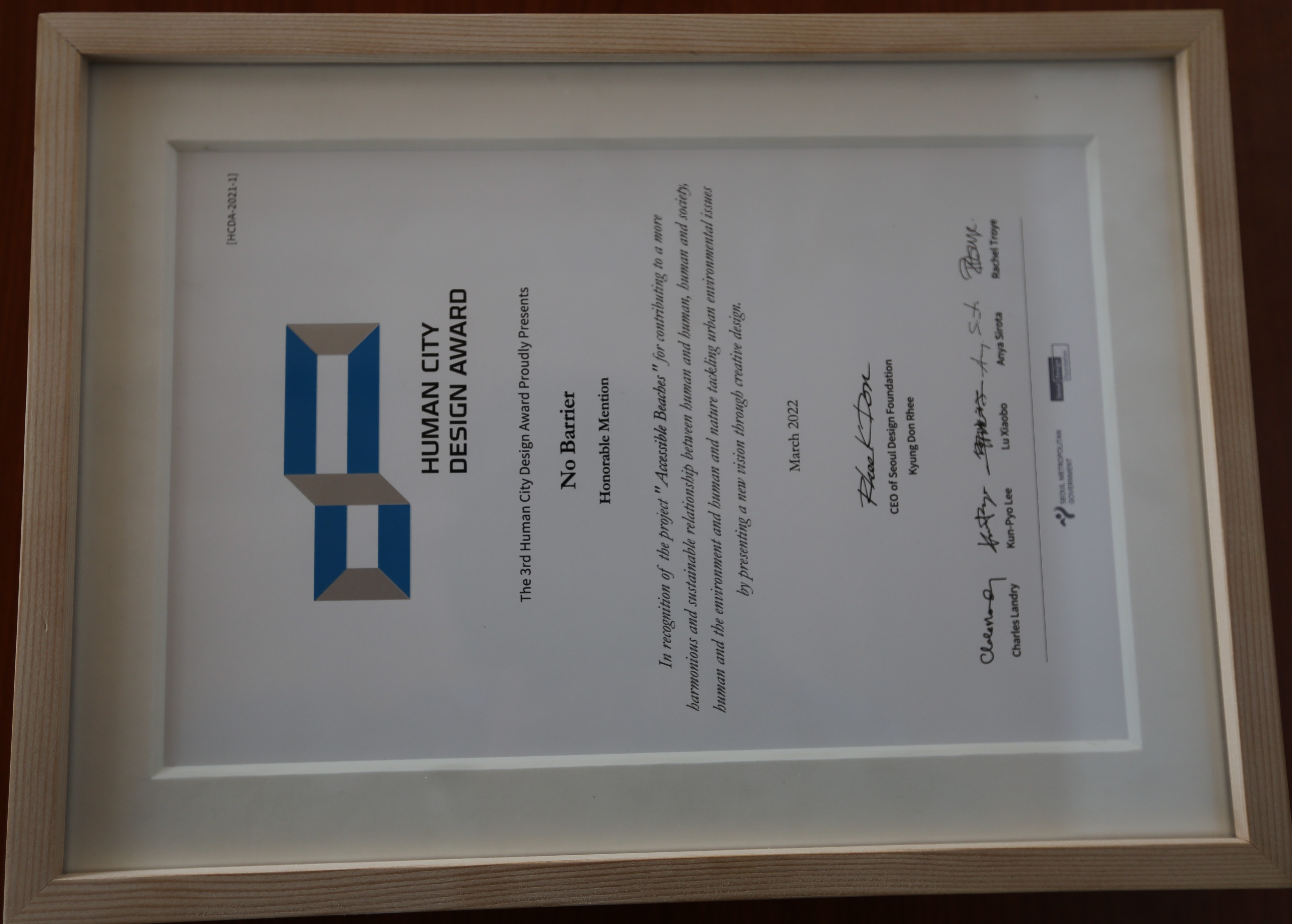 Çeşitli kentsel sorunlara çözümler getirmeyi ve daha iyi bir dünya yaratmayı amaçlayan uluslararası İnsan Kent Tasarım Ödülü (Human City Design Award), hem insanlar hem de toplum arasında uyum inşa eden tasarımcıları ödüllendirmeyi amaçlıyor. Sürdürülebilir şehirler oluşturmak için insanlar ve çevre faktörünün önemine vurgu yapılan İnsan Kent Tasarım ödülleri, yaratıcı ve yenilikçilik, sürdürülebilirlik, kamusallık ve paylaşım, katılım ve işbirliği ile yaşam üzerindeki olumlu etki gibi değerleri savunuyor. Ödüller Charles Landry (Yaratıcı Şehirler konusunda önde gelen otorite) ve Lu Xiaobo (Tsinghua Üniversitesi Sanat ve Tasarım Akademisi Dekanı) dâhil olmak üzere dünyanın ünlü tasarım uzmanları, ve konusunda uzman uluslararası jüri üyelerinin üç aşamalı titiz değerlendirmesi ve Güney Kore’de yapılan halk oylaması sonucu sahiplerine ulaşıyor. Ödül seçiminde tasarımın kentsel yaşam sorunları için çözümler sağlayıp sağlamadığı, geleceğe yönelik vizyonlar ve küresel değerler taşıması sıralamada öncelikleri belirliyor.